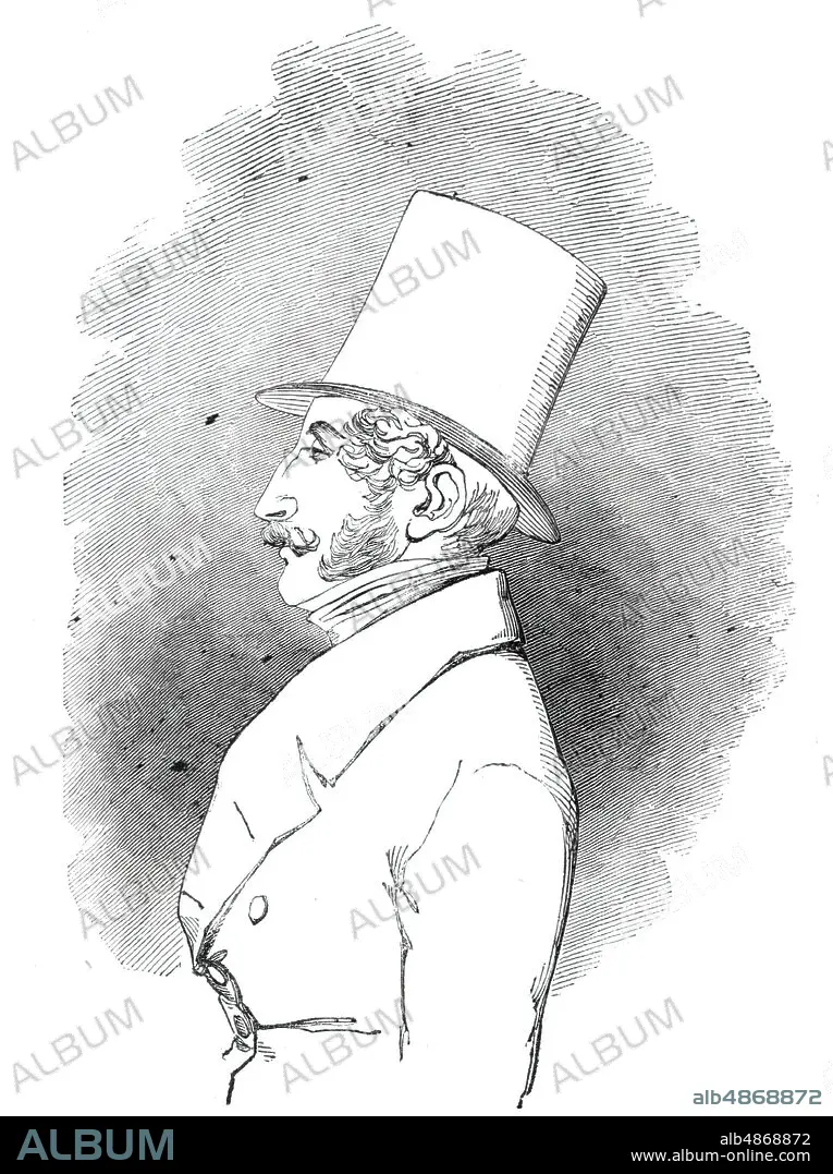 Portrait of the Earl of Cardigan, Steward, 1844. Lieutenant-General James Thomas Brudenell, 7th Earl of Cardigan was an officer in the British Army who led the Charge of the Light Brigade at the Battle of Balaclava during the Crimean War. He was also a steward at Northampton horse races. From "Illustrated London News", 1844, Vol I.