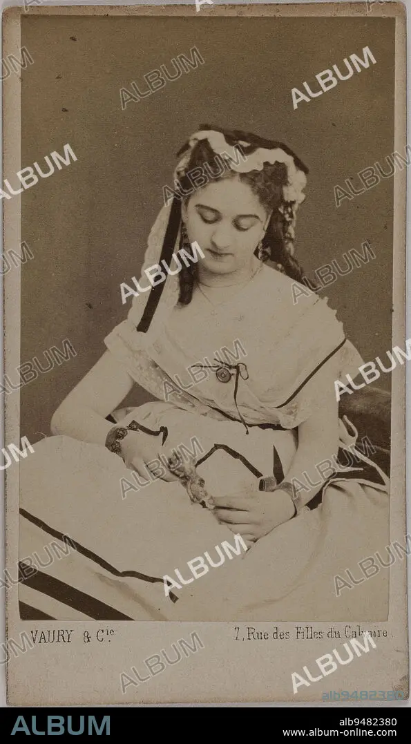 Portrait of Eliza or Elisa or Alhaiza (Aline Alhaiza, née Lambele), (actress at the Folies-Marigny), Vaury et Cie, Photographer, Between 1860 and 1890, 2nd half of the 19th century, Graphic Arts, Photography, Albumen print, Height: 9.3 cm, Width: 5.7 cm