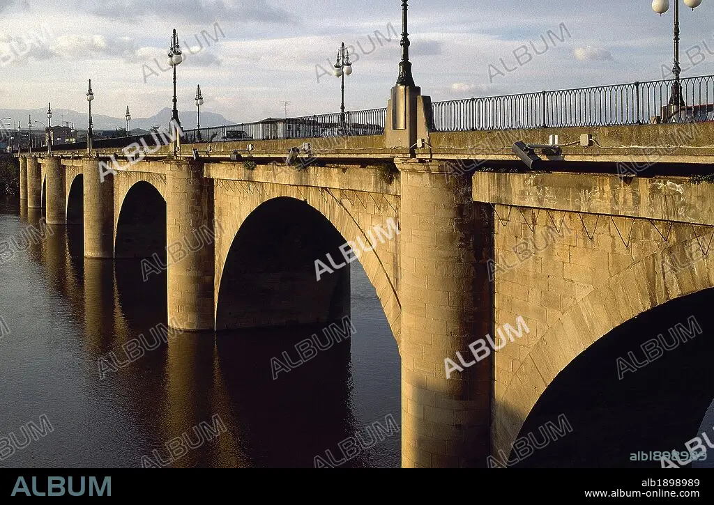 LA RIOJA. LOGROÑO. Vista del PUENTE VIEJO sobre el RIO EBRO. España.