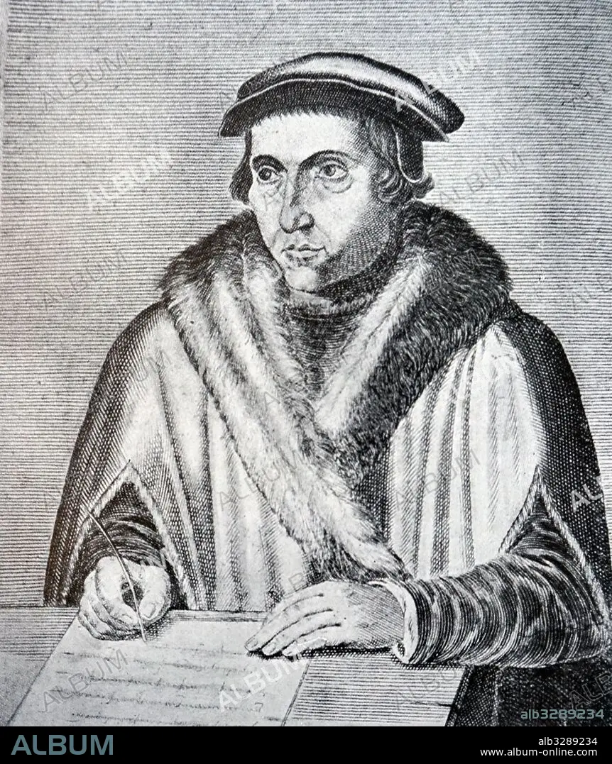 Engraving of Juan Luis Vives (1493-1540) a Valencian scholar and humanist. Dated 16th Century.