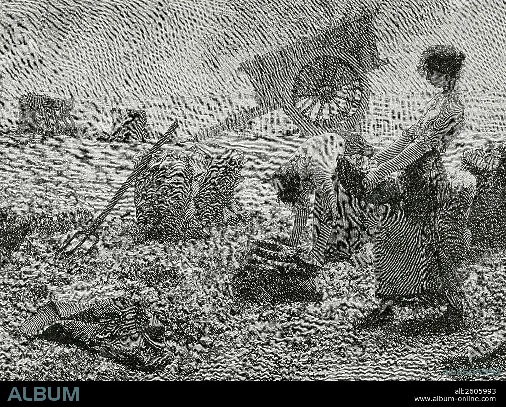 Grabado con la representación de unas mujeres realizando trabajos agrícolas. Francia, principios del siglo XIX.