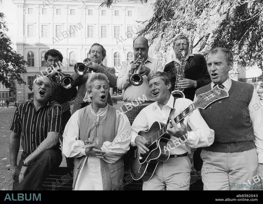 ARKIV 1983 - Vårat gäng spelar och sjunger igen efter 36 år. Här efter nypremiären på Mosebacke Övre raden: Leppe Sundevall, Weine Renliden, Lill-Arne Söderberg, Affe Gleisner. Undre raden: Björn Wigardt, Brita Borg, Tosse Bark och Nisse Engström. Foto: Kenneth Jonasson Kod:24 . COPYRIGHT SCANPIX SWEDEN.