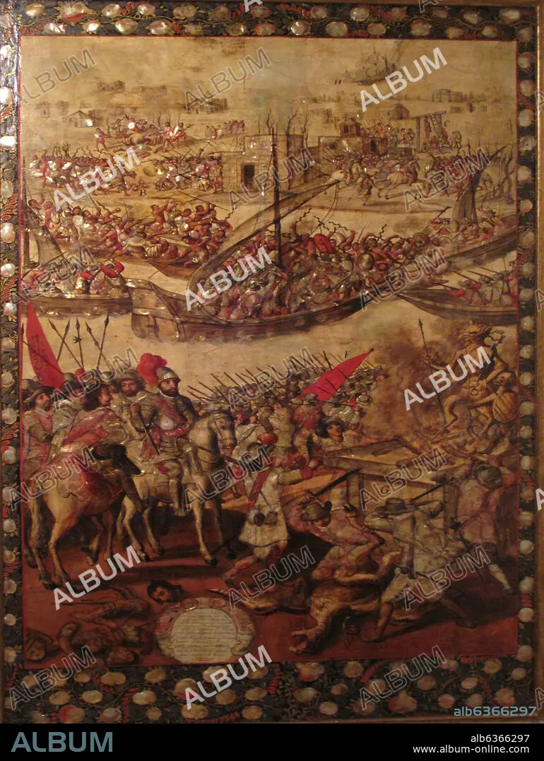 ANÓNIMO. CONQUISTA DE MEXICO - 1676-1700 - ESCUELA MEXICANA - VIRREINATO DE NUEVA ESPAÑA - TABLA/OLEO/NACAR - 205x121 cm
