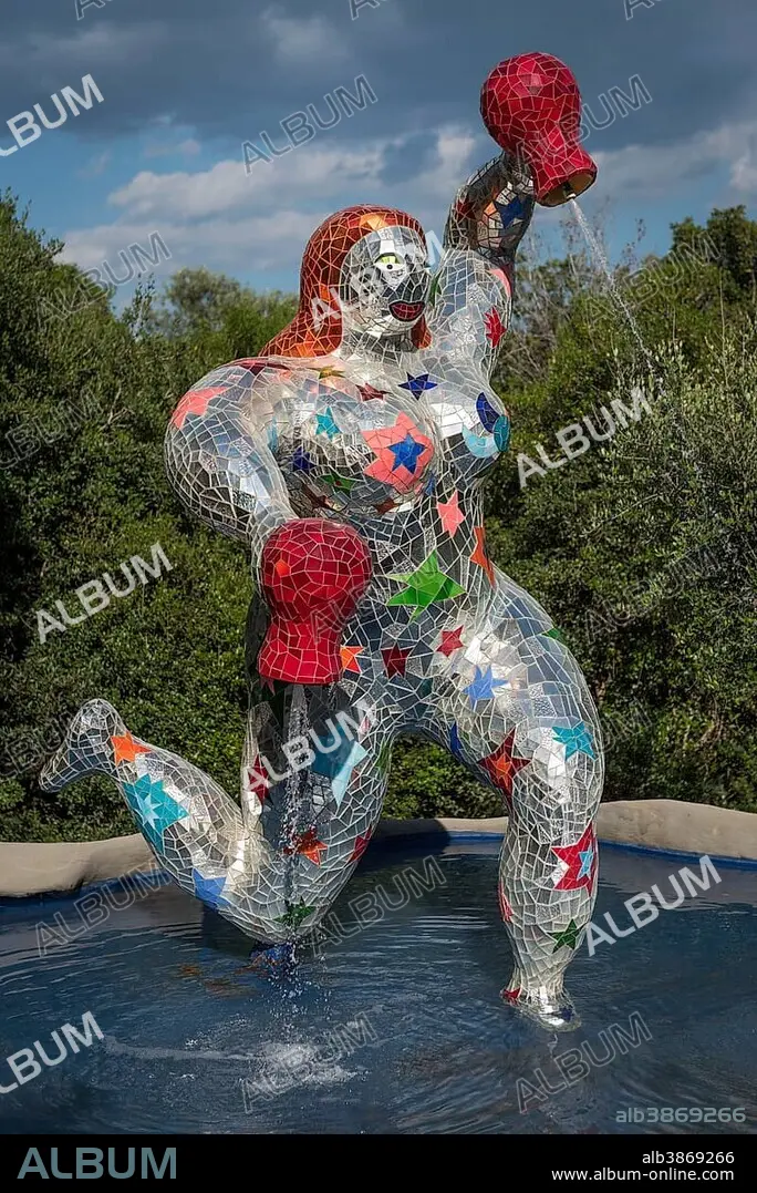 Colorful sculpture, fountain in the Giardino dei Tarocchi or Garden of the Tarot, artist Niki de Saint Phalle and Jean Tinguely in Capalbio, Province of Grosseto, Tuscany, Italy, Europe