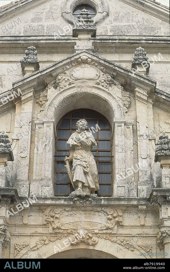 JOSÉ BENITO DE CHURRIGUERA. ESCULTURA DE SAN FRANCISCO JAVIER EN LA FACHADA DE LA IGLESIA - SIGLO XVIII