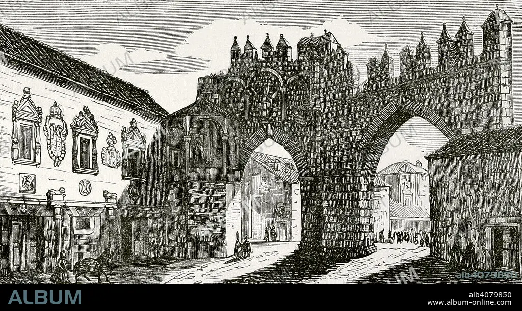 España. Andalucía. Provincia de Jaén. Baeza. Puerta de la Virgen del Pópulo. Grabado. Crónica General de España, Historia Ilustrada y Descriptiva de sus Provincias. Andalucía, 1869.
