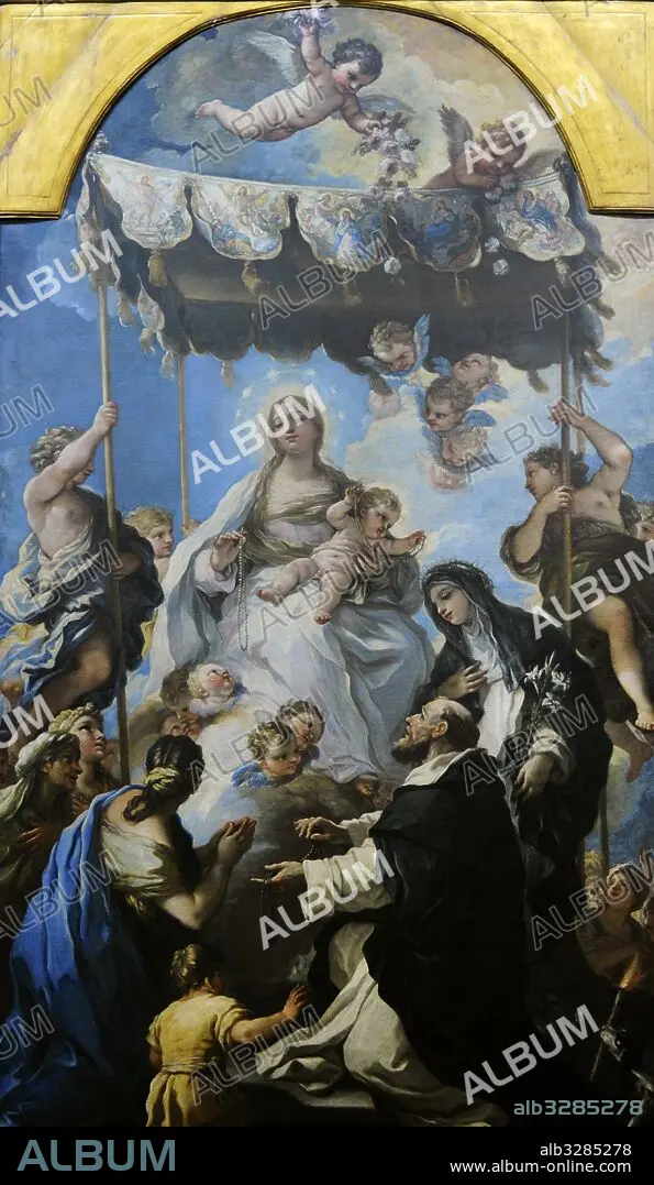 Luca Giordano (1634-1705). Pintor barroco italiano, conocido en España como Lucas Jordán. "Virgen del Rosario (o del baldaquino) ", 1686. Museo de Capodimonte, Nápoles. Italia.