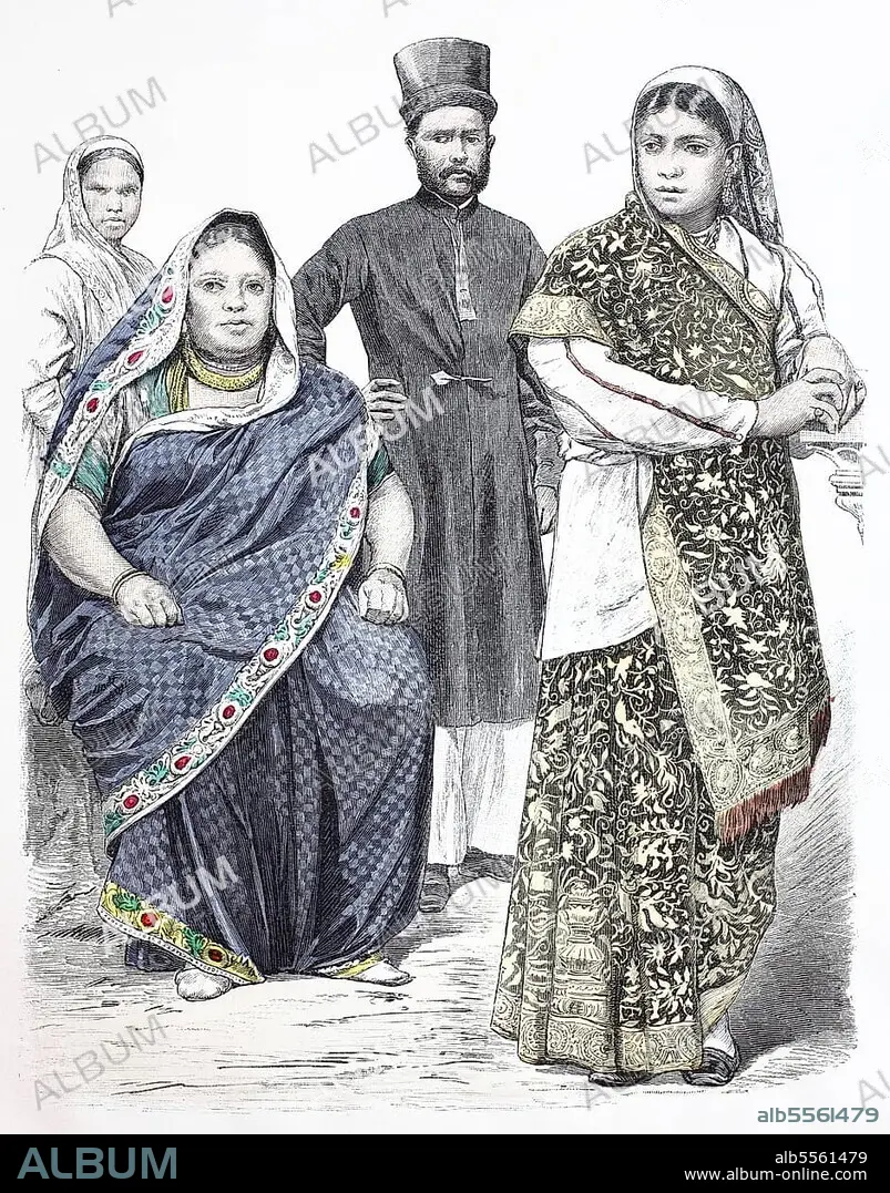 Folk traditional costume, clothing, history of costumes, Parsi from Bombay, India, digitally restored reproduction of an original from the 19th century, exact date unknown