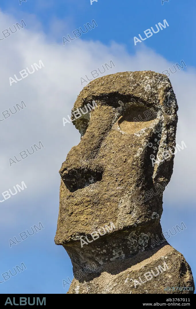 Detail of a moai at Ahu Akivi, the first restored altar on Easter Island (Isla de Pascua) (Rapa Nui), UNESCO World Heritage Site, Chile, South America