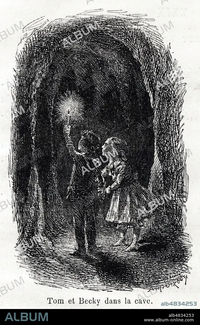 Tom Sawyer et Becky Thatcher dans la cave. Illustration de Achille SIROUY (1834-1904) pour Les aventures de Tom SAWYER de Mark TWAIN (1835-1910). Credit Collection Kharbine Tapabor.