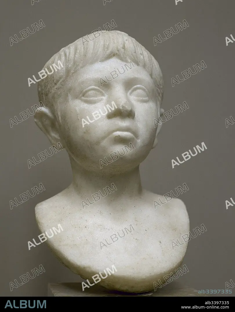 Retrato infantil funerario. 41-68. Mármol. Museo Nacional de Arte Romano. Mérida. Provincia de Badajoz. Extremadura. España.