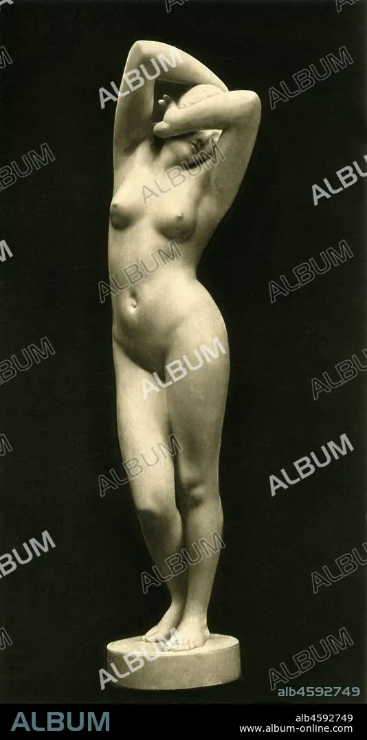 'Phryné', 1903. Nude statue of Phryne, a courtesan who lived in Ancient Greece, c371 BC. Photogravure after a late 19th-early 20th century ivory sculpture by Émile Philippe Scailliet. From "La Revue De L'Art Ancien et Moderne" - Volume XIV, July-December 1903, [Paris, 1903]