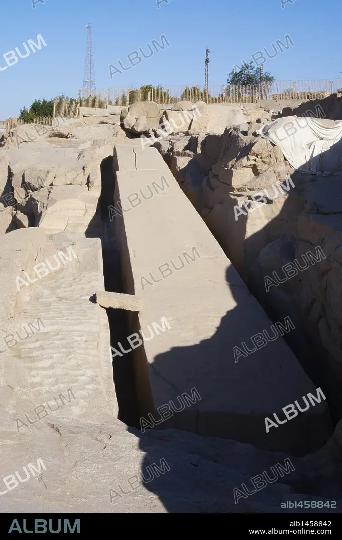 ARTE EGIPCIO. EGIPTO. OBELISCO inacabado en una cantera de granito rosado. Asuán (Aswan). Norte de Africa.