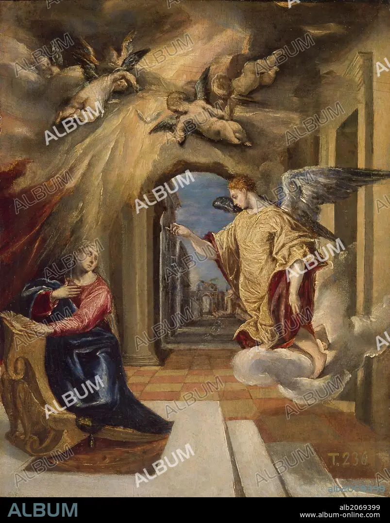 Título: El Greco / 'The Annunciation', ca. 1570, Spanish School, Oil on panel, 26 cm x 20 cm, P00827.