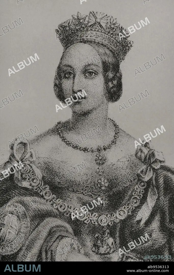 MARTÍNEZ. 19TH CENTURY SPANISH LITHOGRAPHER.. Victoria del Reino Unido (1819-1901). Reina del Reino Unido (1837-1901). Emperatriz de la India. Retrato. Litografía por Martínez. Detalle. Reyes Contemporáneos. Tomo I. Publicado en Madrid, 1855.