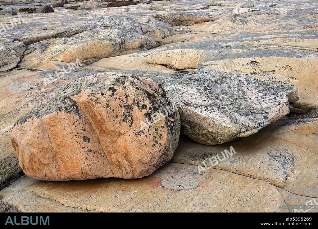 Landscape with granite rocks at the swedish west coast - Ramsvik, Bohuslaen, Vaestergoetland, Sweden, Skandinavia, Europe,, Europe.