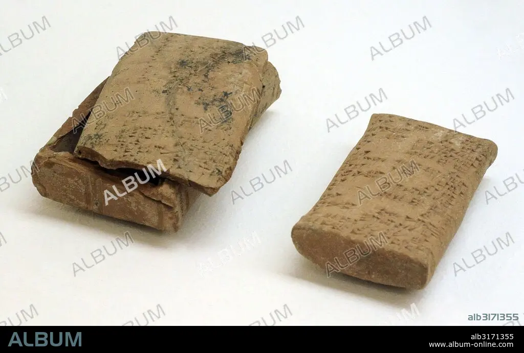 ARTE MESOPOTAMICO. PROXIMO ORIENTE. Tablillas de arcilla. Documentos administrativos y legales escritos en lengua acadia y sumeria. Grafía cuneiforme. Babilonia, Irak. Principios II milenio A. C. Museo del Hermitage (The State Hermitage Museum). San Petersburgo. Rusia.