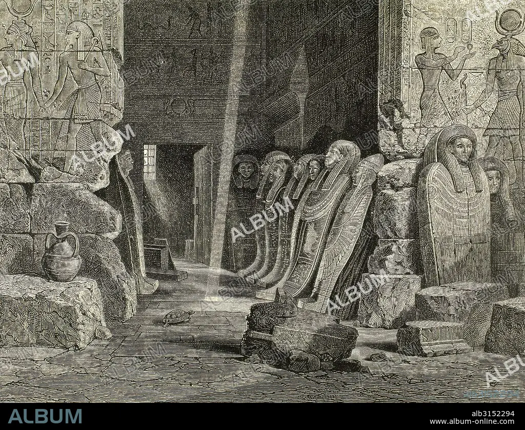 ANTIGUO EGIPTO. Grabado del siglo XIX con la representación del interior del TEMPLO DE APET en KARNAK.