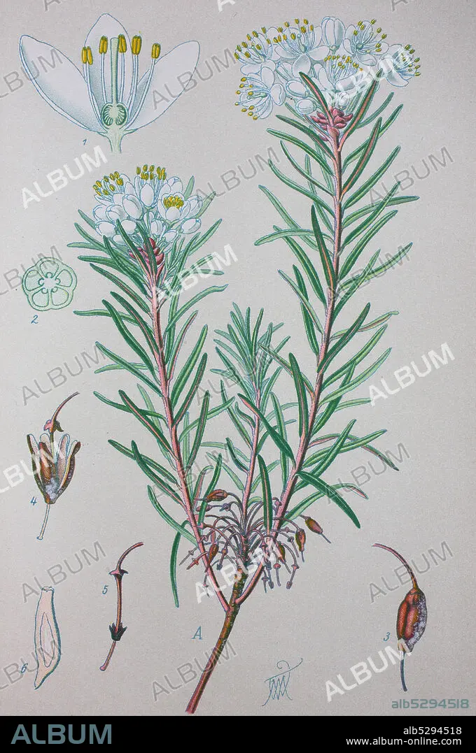 Digital improved high quality reproduction: Rhododendron tomentosum, syn. Ledum palustre, commonly known as marsh Labrador tea, northern Labrador tea or wild rosemary, is a flowering plant in the subsection Ledum of the large genus Rhododendron in the family Ericaceae / Sumpfporst, Pflanzenart aus der Gattung Rhododendron innerhalb der Familie der Heidekrautgewächse.