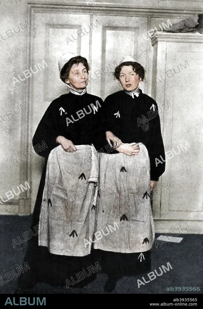 Título: Emmeline and Christabel Pankhurst, English suffragettes, in prison dress, 1908. Artist: Unknown.