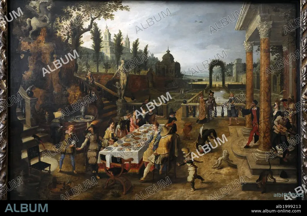 ARTE BARROCO. FLANDES. Sebastian Vrancx también conocido como Sebastian Vranckx (Amberes,1573-Amberes, 1647). Pintor barroco flamenco, especializado en la representación de batallas. "Banquete al aire libre". Museo de Bellas Artes. Budapest. Hungría. Europa.