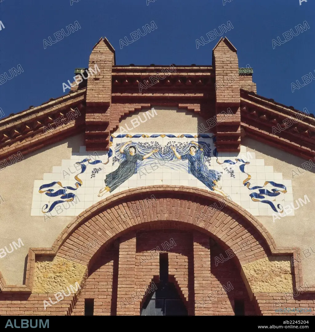 Descripción: Fachada de la cooperativa agrícola de Pinell de Brai. Obra modernista del arquitecto Cèsar Martinell, con friso de Xavier Nogués
