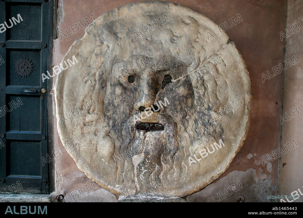 ARTE ROMANO. ITALIA. LA BOCCA DELLA VERITA, enorme disco romano con figura esculpida, cuya boca mordía, según la leyenda a quienes mentían. Iglesia de Santa María in Cosmedin. (El Aventino). Roma.