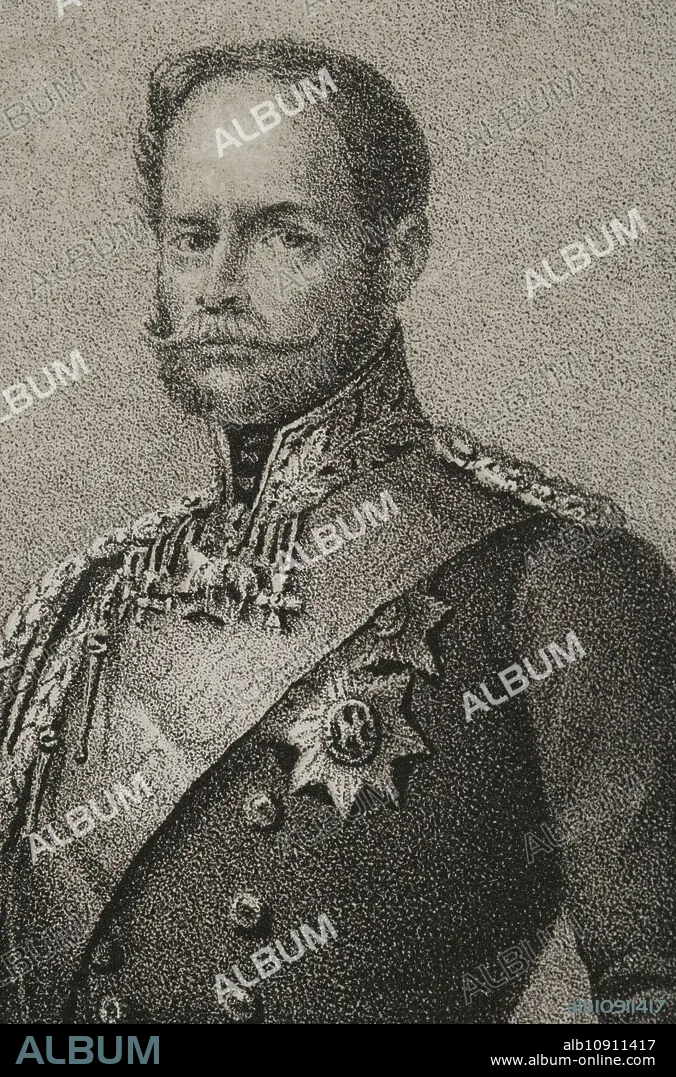 JULIO DONÓN. SPANISH ARTIST ACTIVE FROM 1840 TO 1880. LUIS CARLOS LEGRAND (FL. 1829-1858). SPANISH DRAUGHTSMAN AND LITHOGRAPHER.. Federico de Prusia (1794-1863). Príncipe prusiano. General de la caballería real y comandante de división. Retrato. Dibujo por C. Legrand. Litografía por J. Donón. Detalle. Reyes Contemporáneos. Tomo III. Publicado en Madrid, 1854.