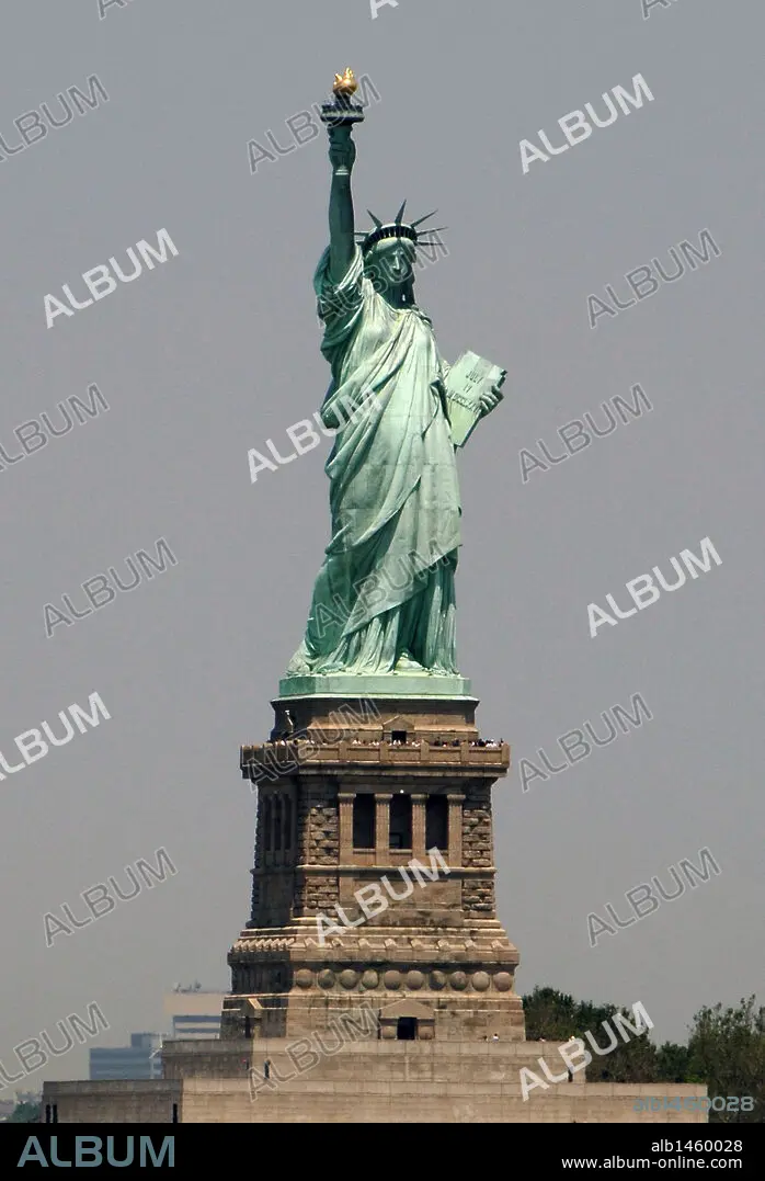 ESTADOS UNIDOS. NUEVA YORK. Vista de la ESTATUA DE LA LIBERTAD, realizada en bronce. Su diseño exterior es obra de Frederic Auguste BARTHOLDI y la estructura interna de Gustave EIFFEL. Construida en Paris y regalada la Nueva York, se instalo en 1886 en la Isla Ellis.