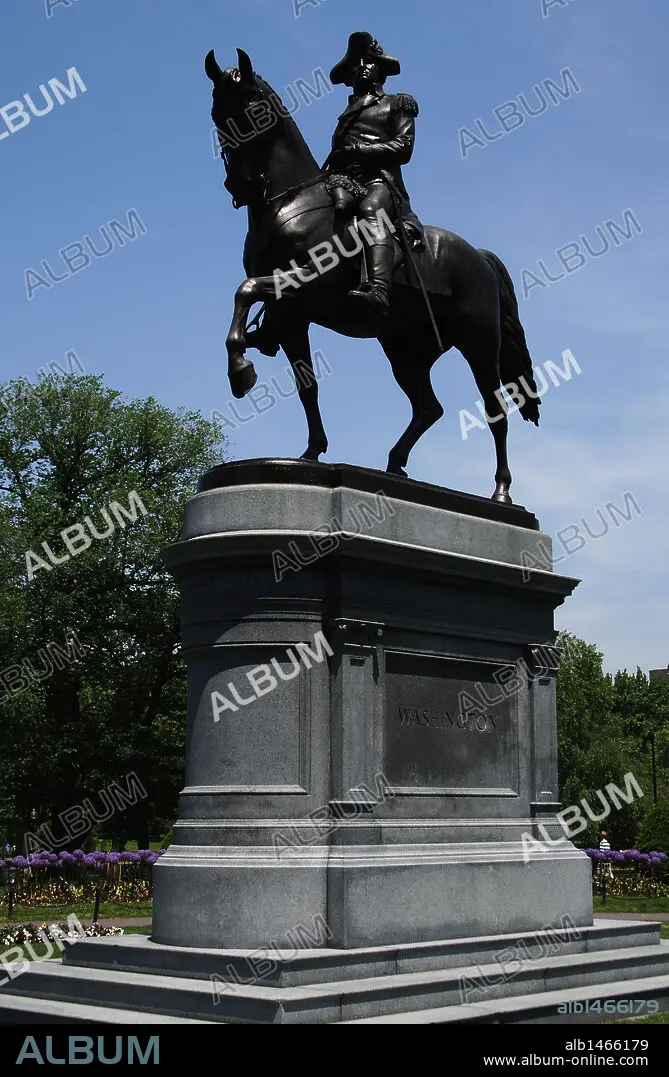 GEORGE WASHINGTON (1732-1799). Militar y político estadounidense. Ganó la guerra de la Independencia contra Inglaterra (1775-1782). Elegido para la presidencia de la Convención de 1787, firmó la Constitución de los Estados Unidos. Elegido presidente en 1789 y 1792. S. XVIII. Monumento en el Parque Boston Common. Boston. Estado de Massachusetts. Estados Unidos.
