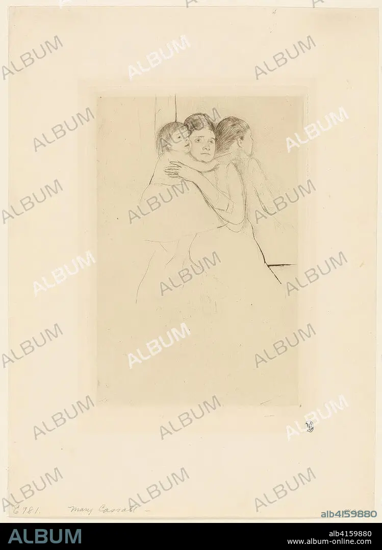 Mother Berthe Holding Her Child. Mary Cassatt; American, 1844-1926. Date: 1889. Dimensions: 220 x 144 mm (image); 236 x 159 mm (plate); 367 x 262 mm (sheet). Drypoint on cream wove paper. Origin: United States.