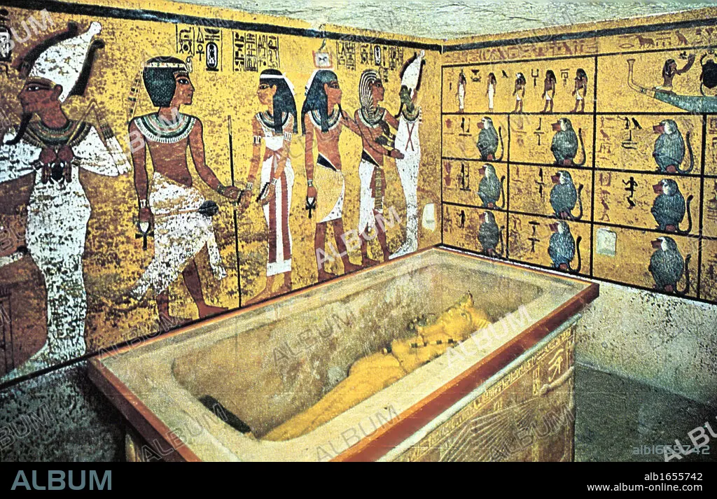 Tomb of Tutankhamun (dc1340 BC): Sarcophagus containing gold coffin of the king which held his mummy.. Cairo Museum, Egypt.