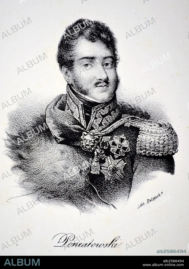 Prince Jozef Poniatowski (1763-1813) Polish leader and general. Fought for Napoleon on his Russian campaign. Created Marshal of France during the Battle of Leipzig, October 1813, during which he died. Lithograph, Paris, c1832. Photo by: .