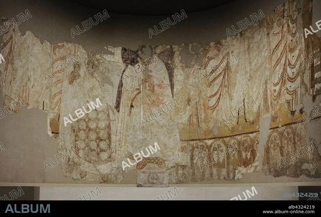 Catedral de Faras. Pintural mural del ábside con la representación de la Virgen María con el Niño flanqueada por los doce apóstoles, gobernantes Nubios y un obispo. Siglos VIII-XIII. Galería Faras. Museo Nacional. Varsovia. Polonia.