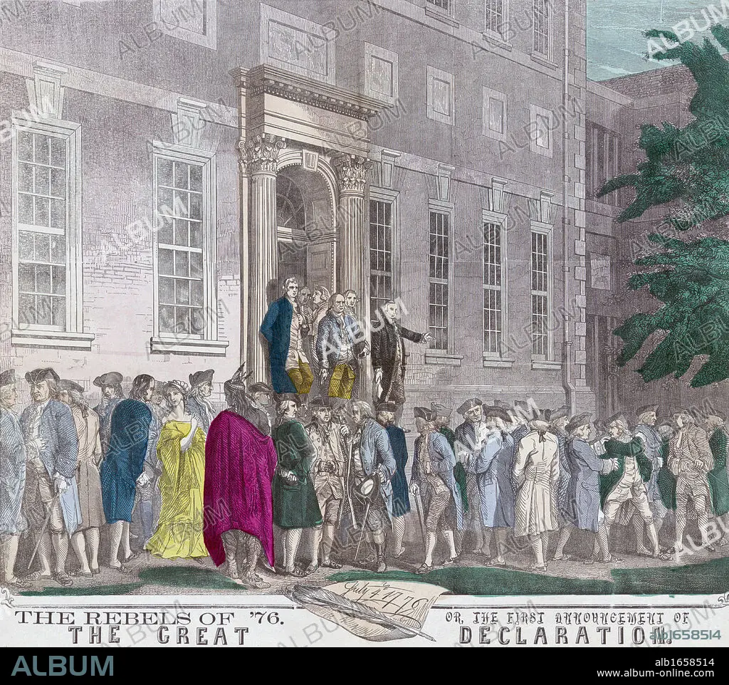 On July 4, 1776 members of the Second Continental Congress leave Philadelphia's Independence Hall after adopting the Declaration of Independence from Great Britain. From a 19th century print.