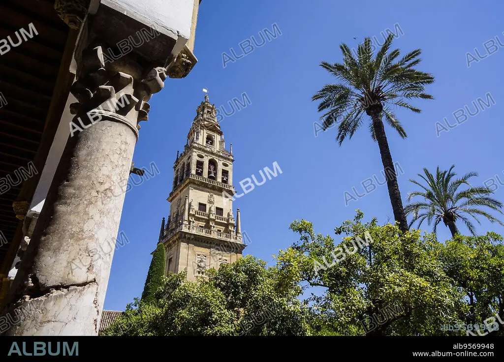 torre campanario sobre el alminar, patio de los naranjos, Mezquita-catedral de Córdoba, Andalucia, Spain.