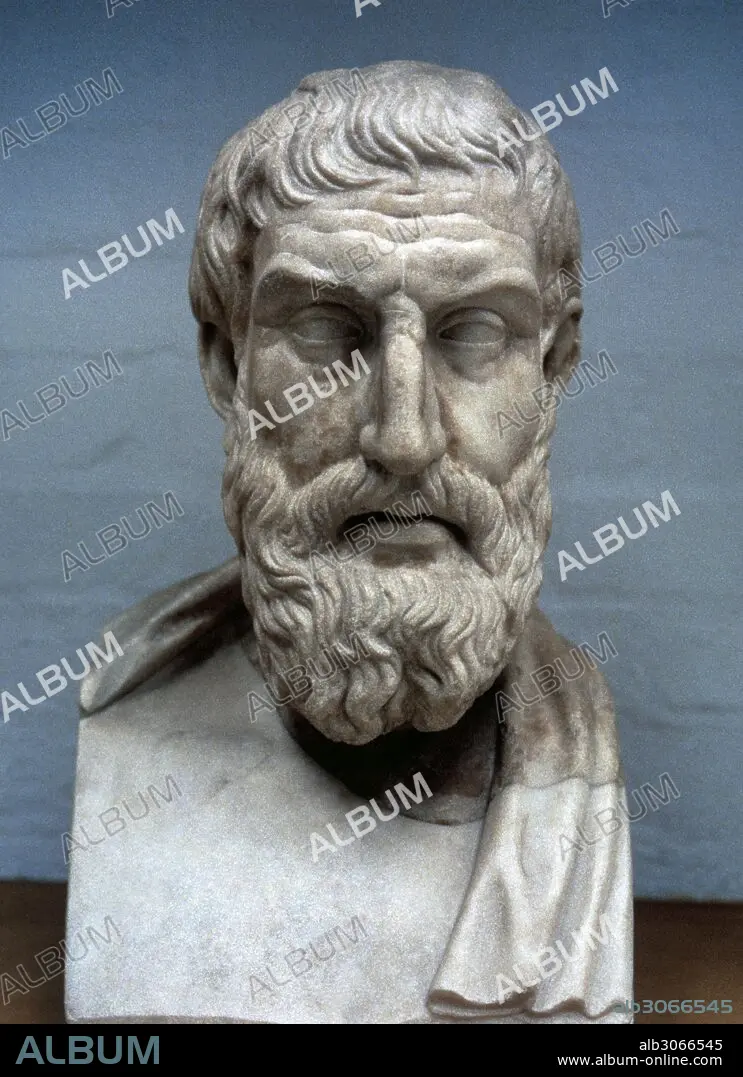 Epicuro (Samos, h.341-Atenas,270 a. C). Filósofo griego. En el año 306 a. C fundó en Atenas su escuela o jardín. Busto de Epicuro datado entre 1 y 160. Mármol. Hallado en la Villa Casali (Roma, Italia). Museo Británico. Londres. Inglaterra.