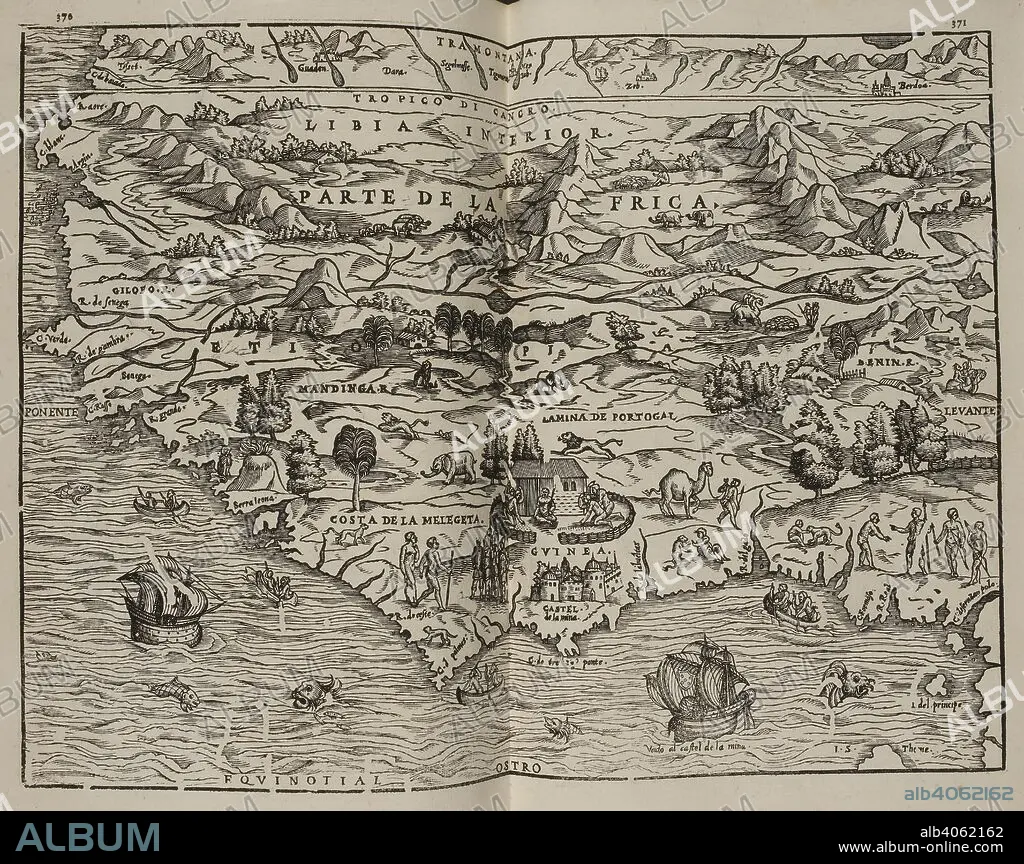 Mapa del Parte de la Frica. Coleccion de los viages y descubrimientos que hicieron por mar los Españoles desde fines del siglo XV. Madrid. Image taken from Collection of voyages and discoveries made by sea the Spaniards from the late fifteenth century. With several unpublished documents concerning the history of the Marina Castellana and the Spanish settlements in the Indies. Coordinated and illustrated by M. F. N.Published in 1825-37. Source: G.6823 370-371. Language: Spanish.