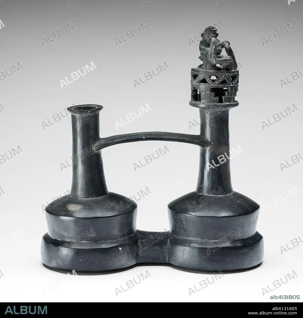 Double Vessel with a Foot-Massage Scene. Chimú; North coast, Peru. Date: 1200-1450. Dimensions: 21.3 × 20.2 cm (8 3/8 × 7 15/16 in.). Ceramic. Origin: North Coast.