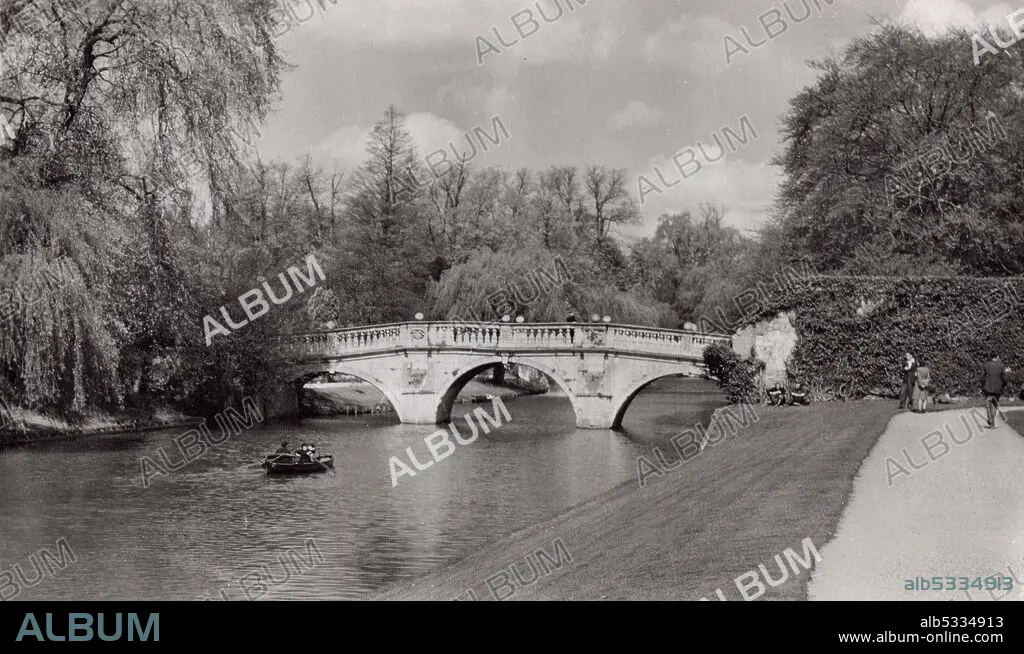 Clare Bridge, Cambridge, 1940s. Clare College Bridge over the river Cam is the oldest still functioning bridge in Cambridge. It was built in 1639-40 by Thomas Grumbold.