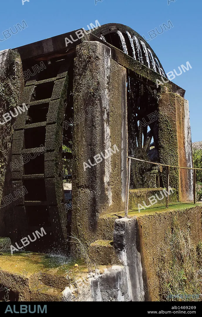 NORIA "HOYA DE DON GARCIA". Rueda hidráulica situada en la margen izquierda del río Segura. Fue construida en madera en el año 1818. ABARAN. Comunidad de Murcia. España.
