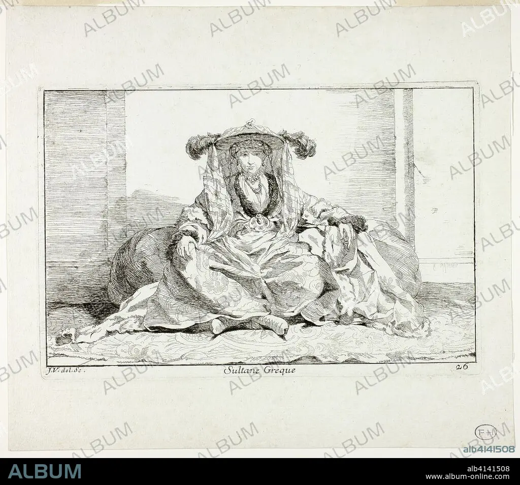 JOSEPH MARIE VIEN I. Sultane Grecque, plate 26, from Caravanne du Sultan à la Mecque. Joseph Marie Vien; French, 1716-1809. Date: 1748. Dimensions: 128 × 199 mm (image); 136 × 204 mm (plate); 206 × 233 mm (sheet). Etching on ivory laid paper. Origin: France.