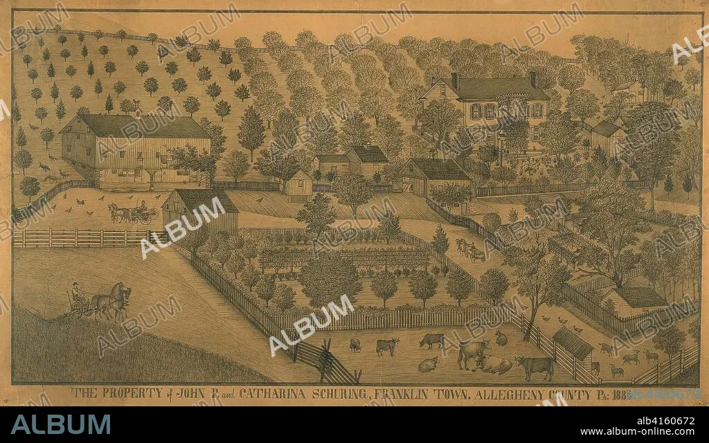 The Property of John P. and Catharina Schuring, Franklin Town, Allegheny County, Pennsylvania. Ferdinand A. Brader; American, fl. 1883-1893. Date: 1883. Dimensions: 780 x 1345 mm. Graphite on paper. Origin: United States.