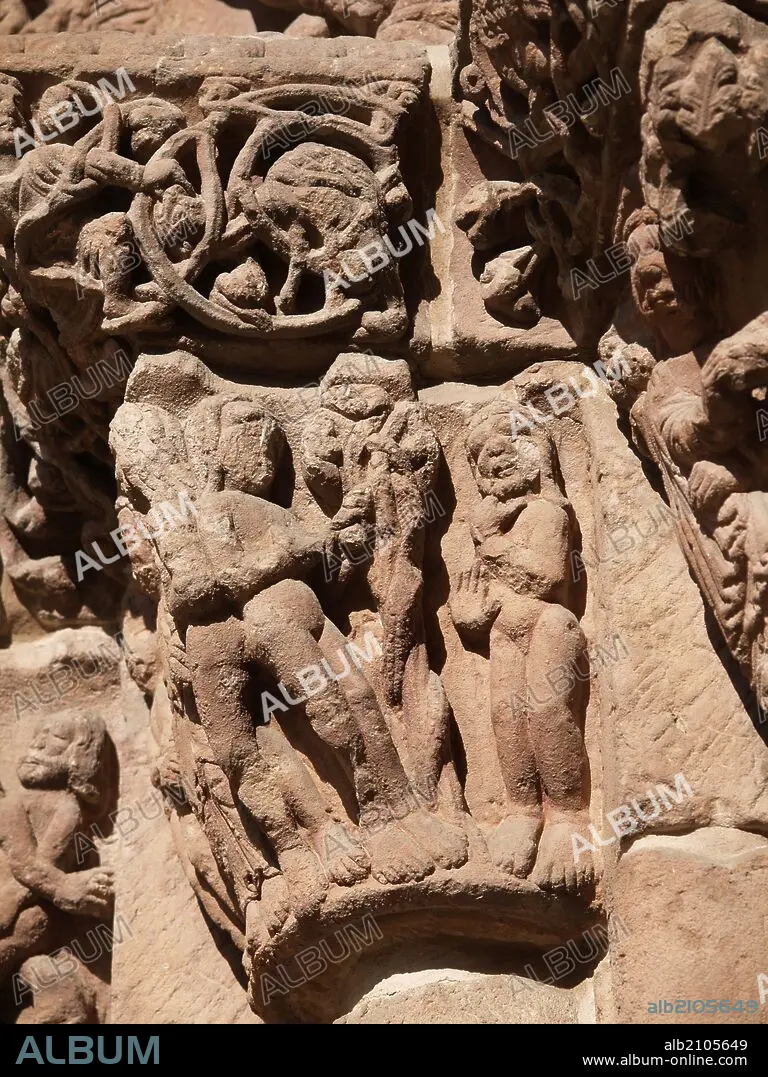 IGLESIA DE SANTO DOMINGO. DETALLES DE LA FACHADA: RELIEVES DE LOS CAPITELES