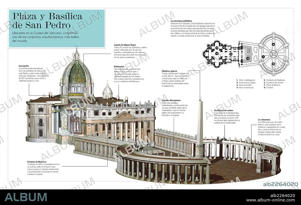 Infografía sobre la Plaza de San Pedro y la Basílica de San Pedro, ambas ubicadas en la Ciudad del Vaticano.