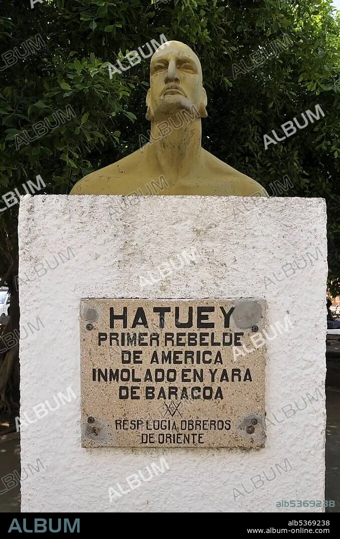 Hatuey statue, Parque Independencia, historic centre of Baracoa, Cuba, Caribbean, Central America