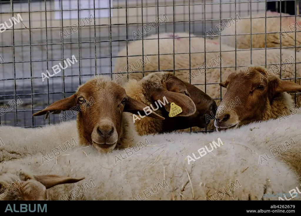 Descripción: oveja roja mallorquina, cruzamiento antiguo entre ovinos autóctonos de la isla de Mallorca y otros procedentes del Norte de África, feria de Llucmajor, Mallorca, balearic islands, spain, europe