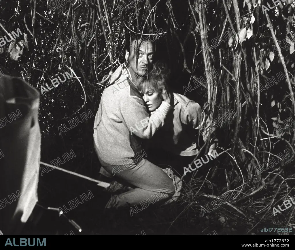 Traducción automática: El actor británico David Niven actúa junto a la actriz estadounidense Kim Novak en la película 'Eye of the Devil'. 1965