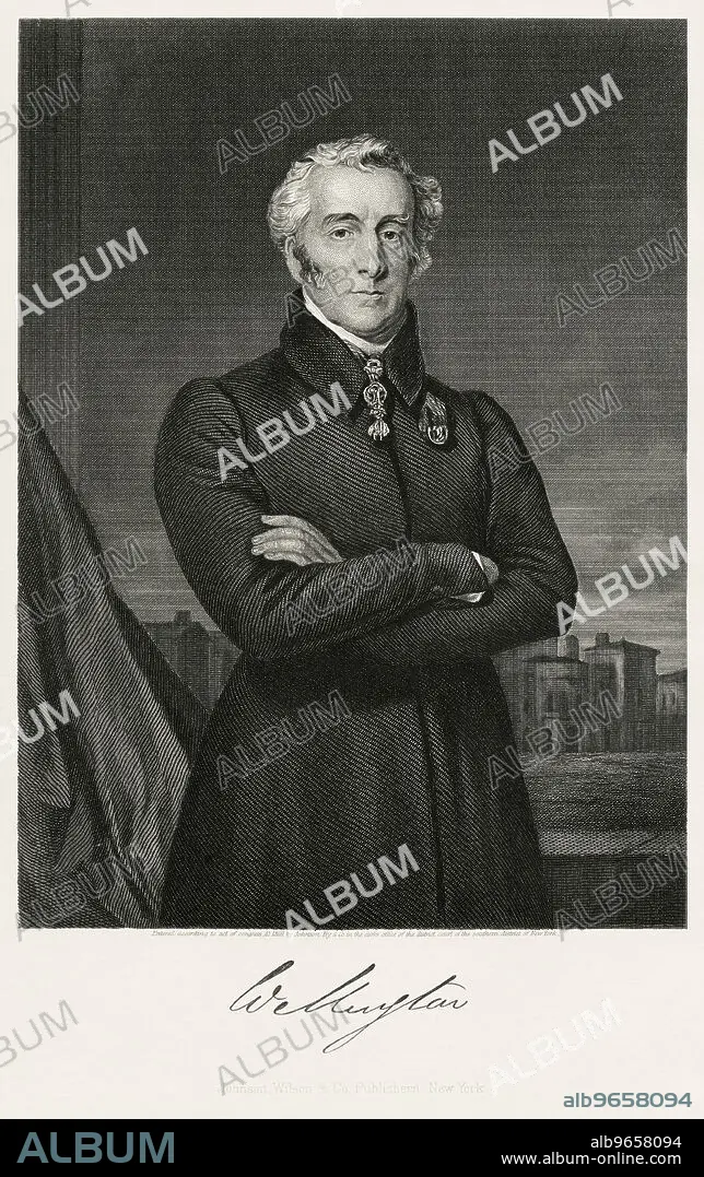 Arthur Wellesley (1769-1852), 1st Duke of Wellington, Leading British Military and Political Figure, serving twice as Prime Minister of the United Kingdom 1828-30, 1834-34, Three-Quarter Length Portrait, Steel Engraving, Portrait Gallery of Eminent Men and Women of Europe and America by Evert A. Duyckinck, Published by Henry J. Johnson, Johnson, Wilson & Company, New York, 1873