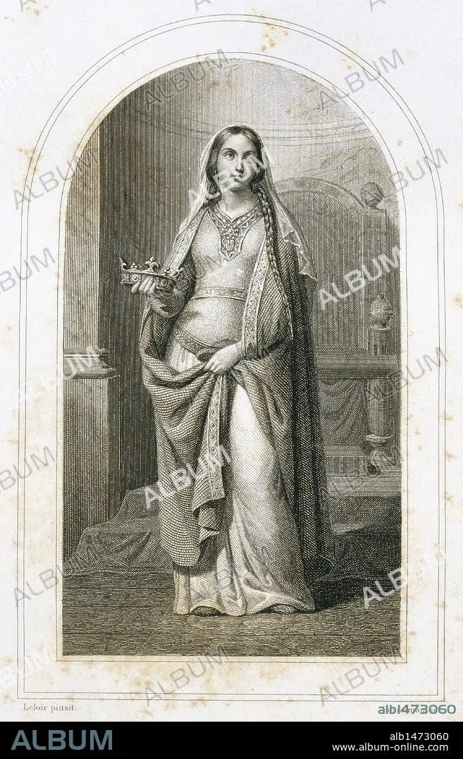 Descripción: SANTA CLOTILDE (h. 475-545). Princesa burgundia, hija de Chilperico II de Burgundia y esposa de Clodoveo I, rey de los francos, quien, gracias a su influencia, se convirtió al catolicismo. Grabado del siglo XIX.